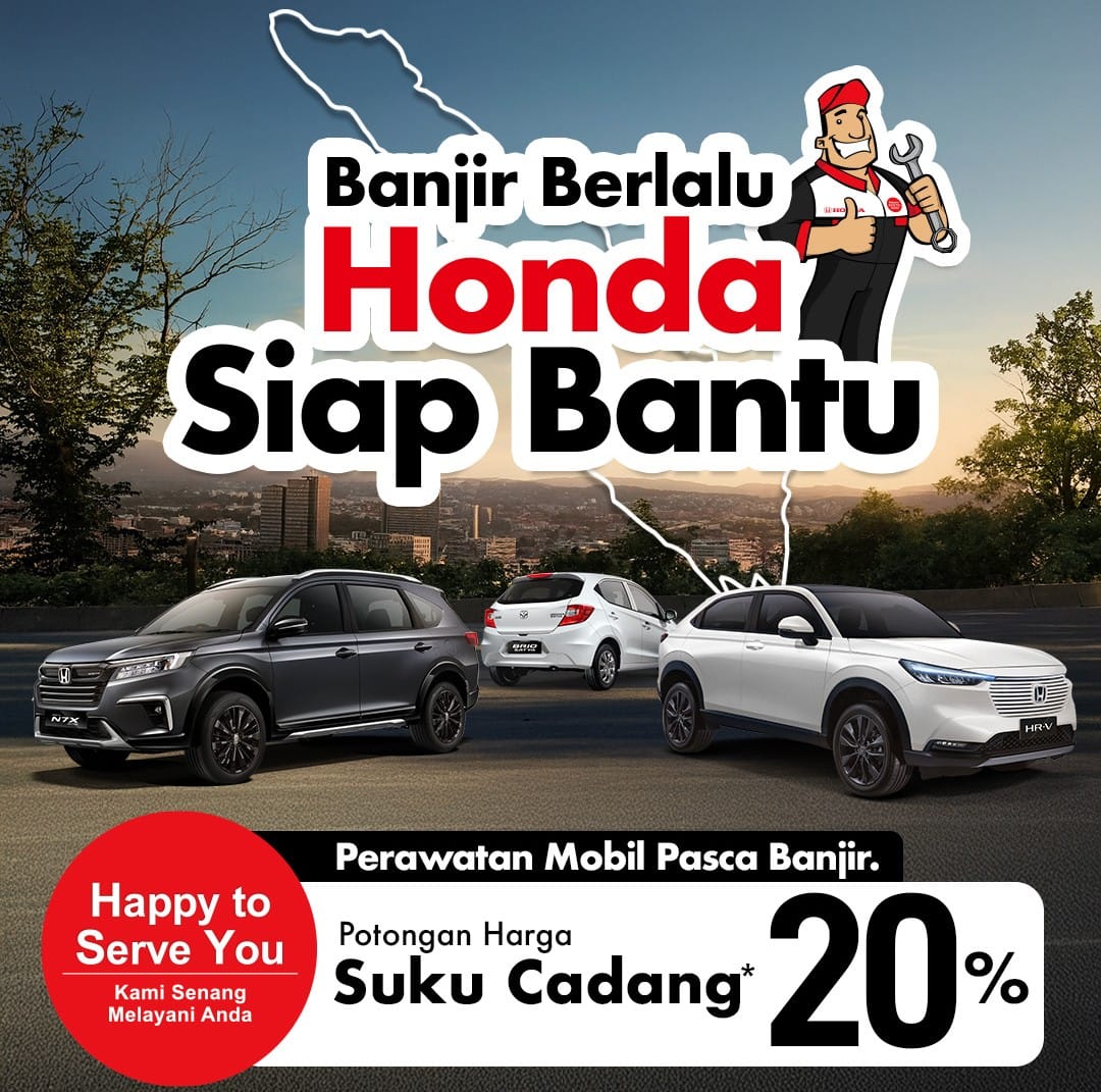 Melalui program ini, pemilik mobil Honda yang mengalami kerusakan akibat banjir berhak mendapatkan diskon 20% untuk seluruh suku cadang (kecuali aksesoris) ketika melakukan perbaikan di seluruh bengkel resmi Honda di Aceh, Medan, dan Padang.
