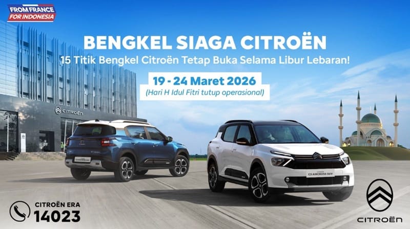 Untuk mendukung mobilitas pelanggan, Citroën juga menyiagakan 15 Bengkel Siaga di berbagai kota strategis jalur mudik seperti Jakarta, Bandung, Semarang, Surabaya, Yogyakarta, hingga Makassar dan Medan. Bengkel ini beroperasi pada 19–24 Maret 2026, kecuali saat hari-H Idul Fitri.