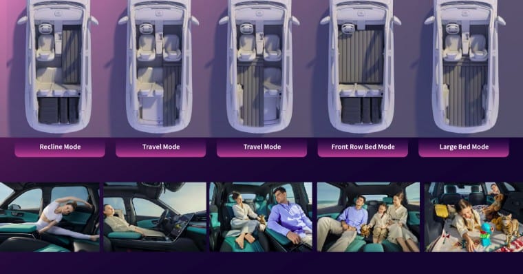 Berbekal wheelbase 2.800 mm, kabin LEPAS L8 terbilang lapang dan dapat bertransformasi menjadi berbagai konfigurasi. Mulai dari Recline Mode untuk beristirahat sejenak, Front Row Bed Mode yang menghadirkan sensasi glamping mewah, hingga Large Bed Mode yang menciptakan ruang luas untuk bersantai bersama keluarga.